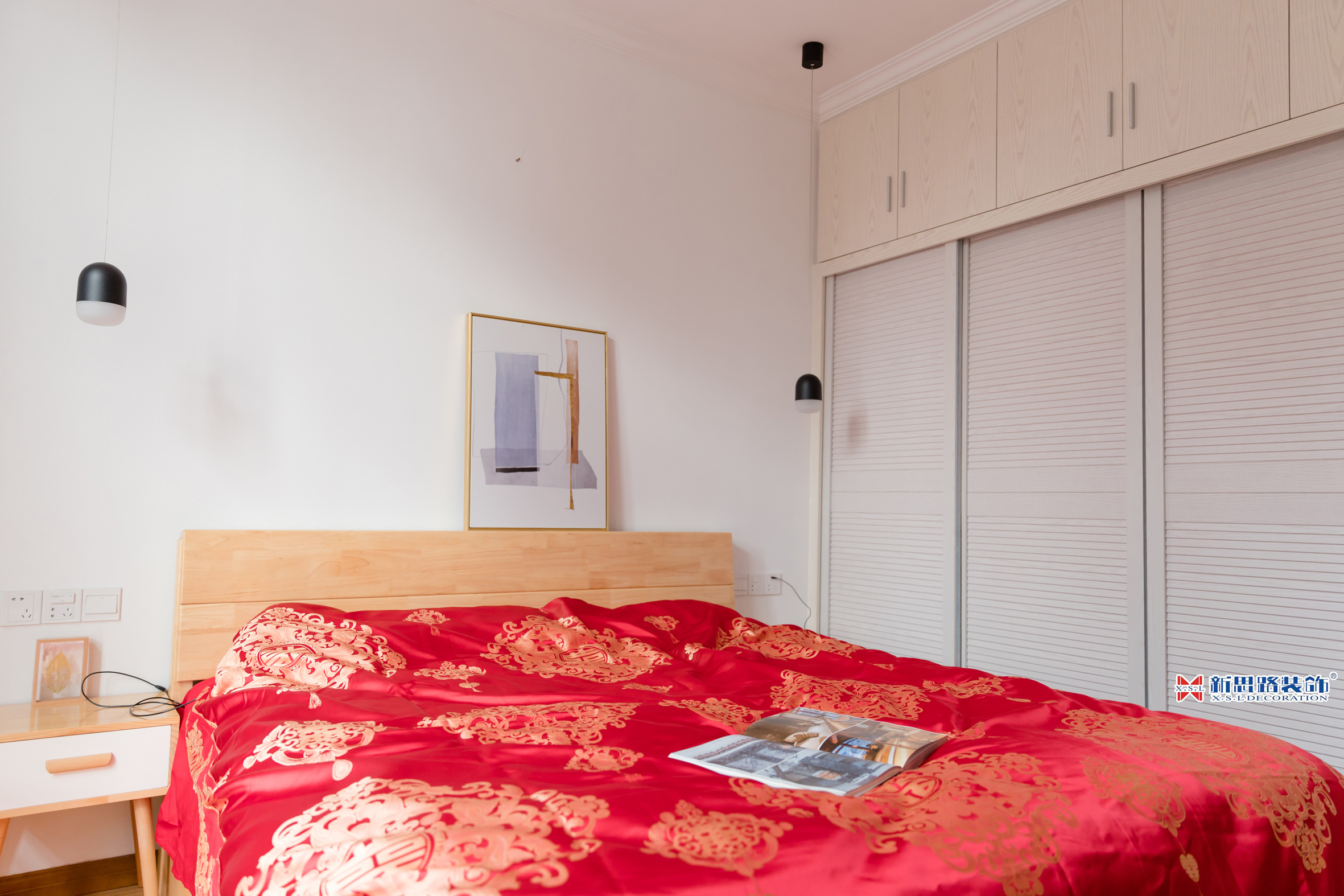 顏色和軟裝的搭配是本案的最大亮點(diǎn),本案主要以白色與原木色為主,墻面大量運(yùn)用白色乳膠漆,使得整個(gè)空間干凈而明亮。