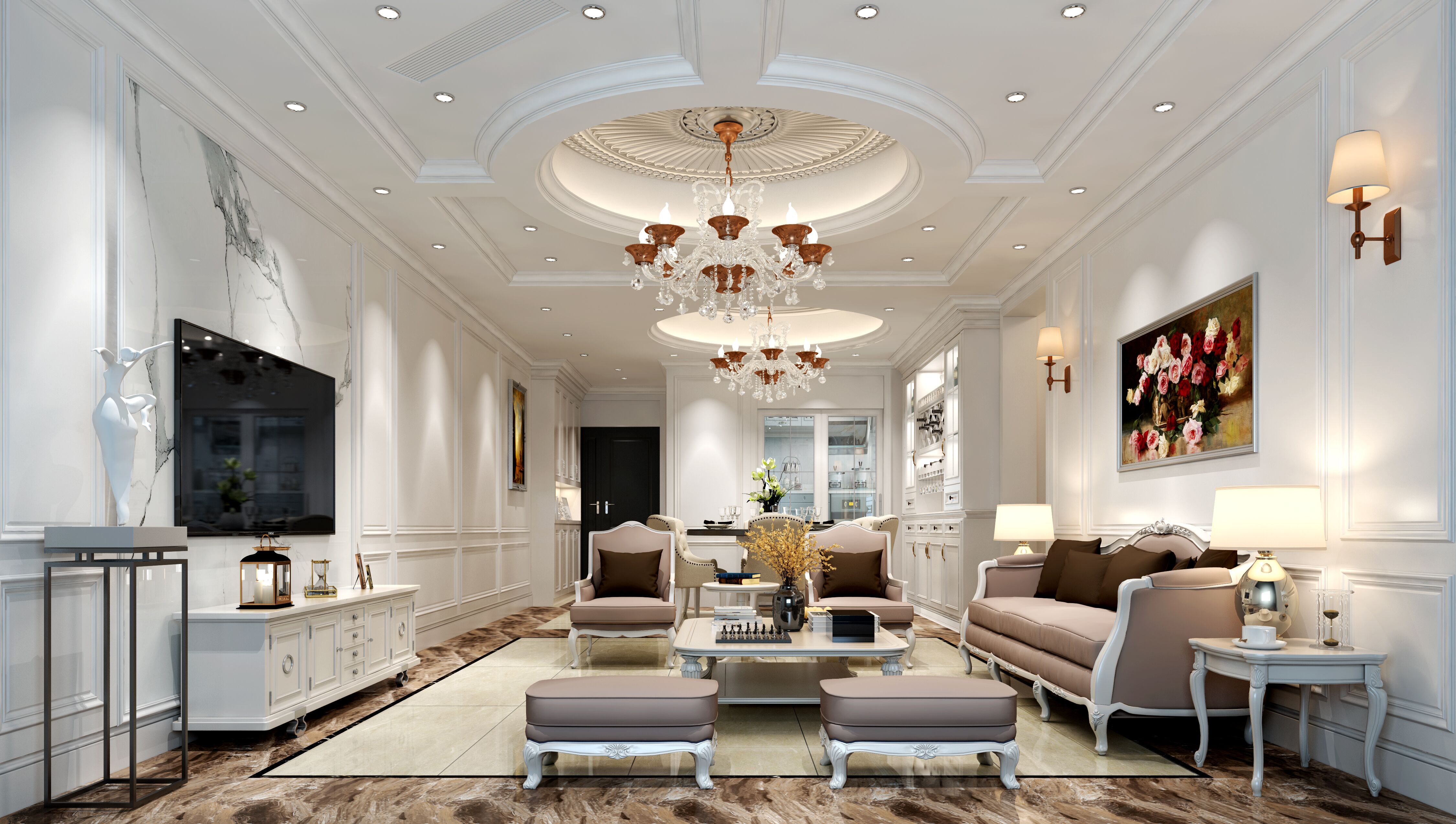 ● 戶型面積:110㎡ ● 設(shè)計(jì)風(fēng)格:現(xiàn)代美式 ● 整體預(yù)算:30萬(wàn) 效果欣賞 客廳區(qū)域 主臥 女兒房