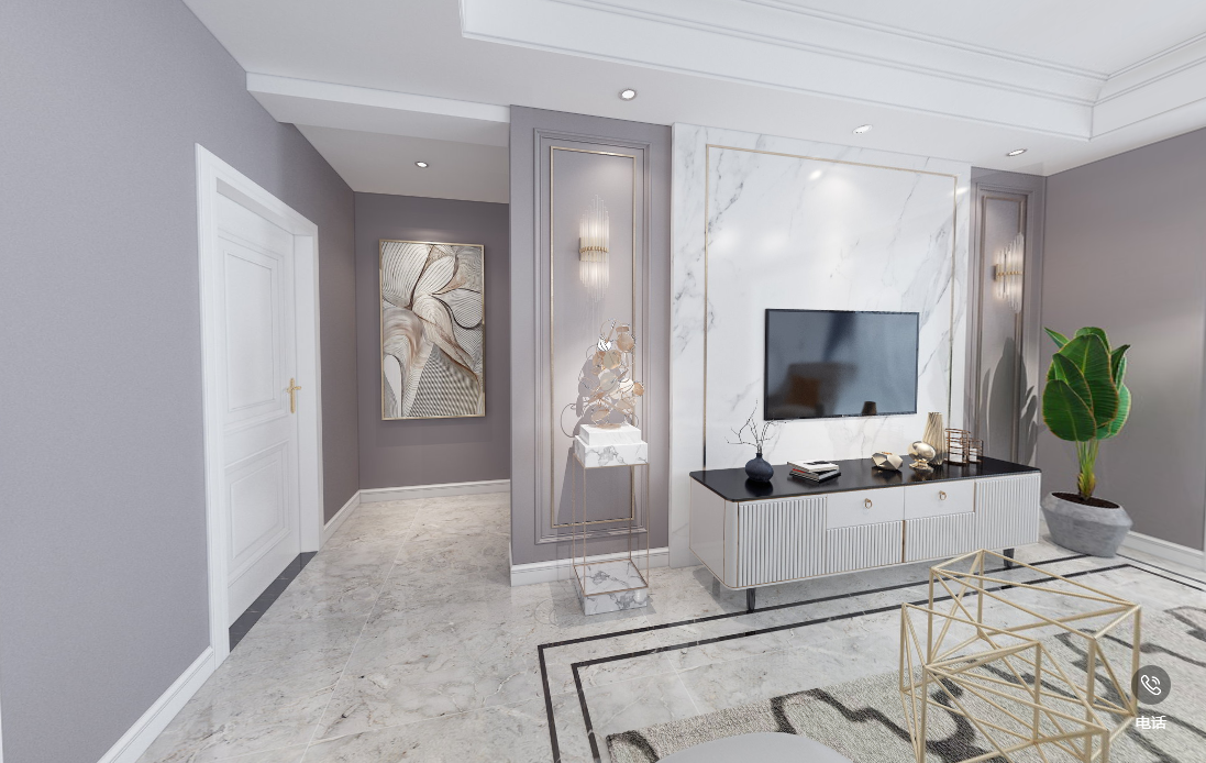 ● 戶型面積:100㎡ ● 設(shè)計(jì)風(fēng)格:簡(jiǎn)約美式 ● 整體費(fèi)用:20萬(wàn) 效果欣賞 客廳簡(jiǎn)美 全景圖雙擊