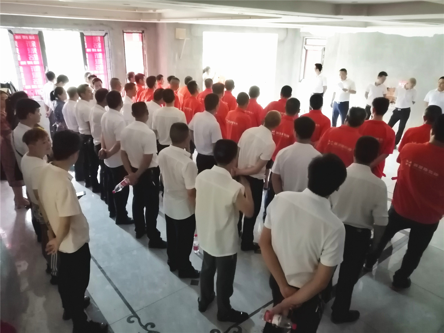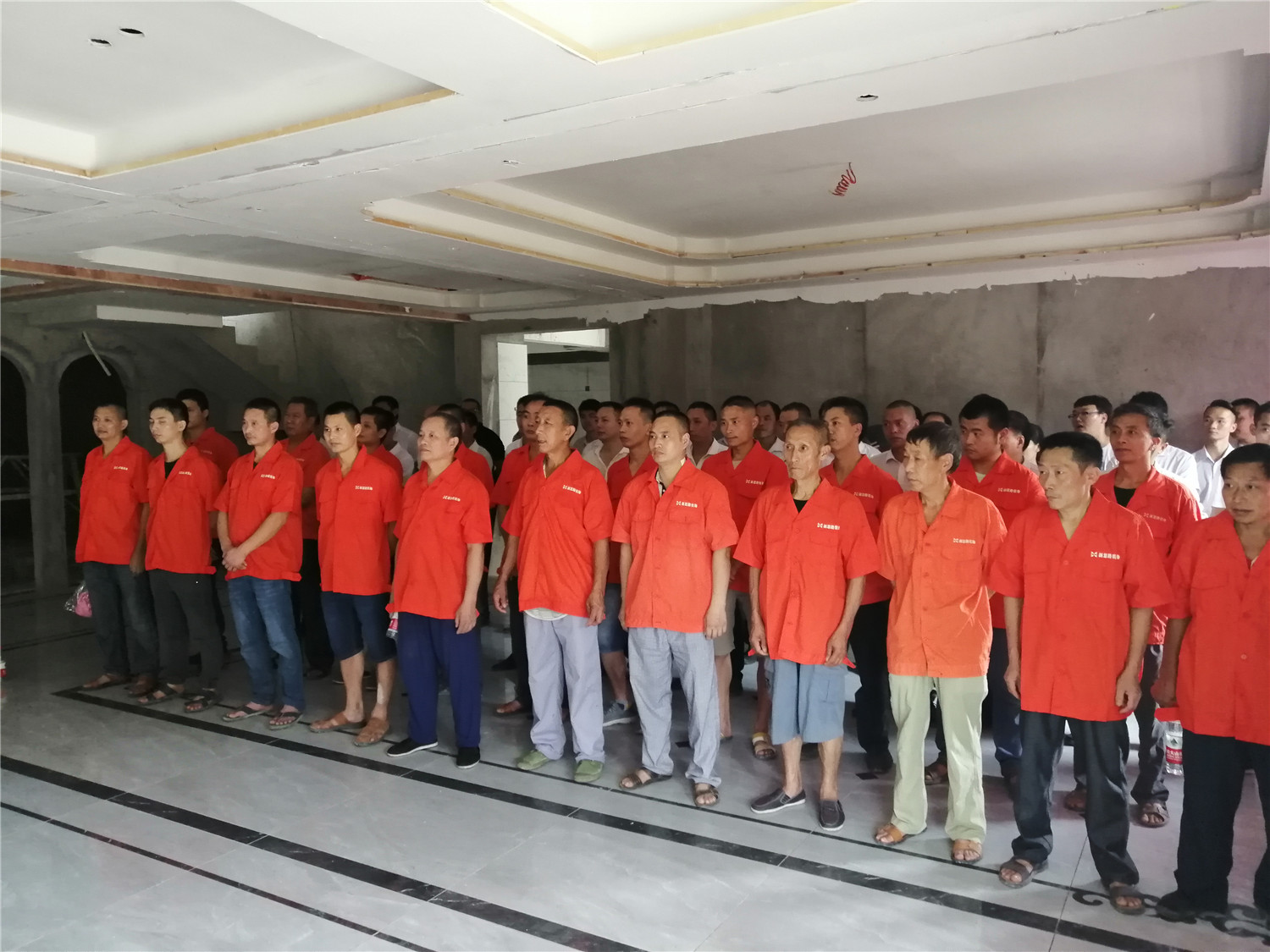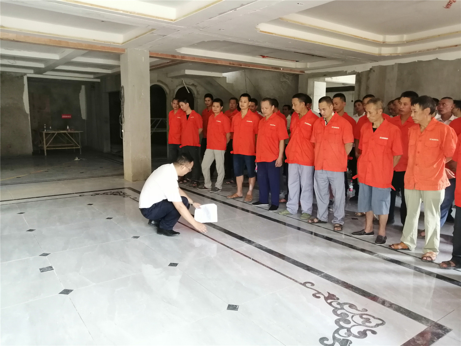 給工人和項目經(jīng)理整隊,展現(xiàn)良好精神面貌
