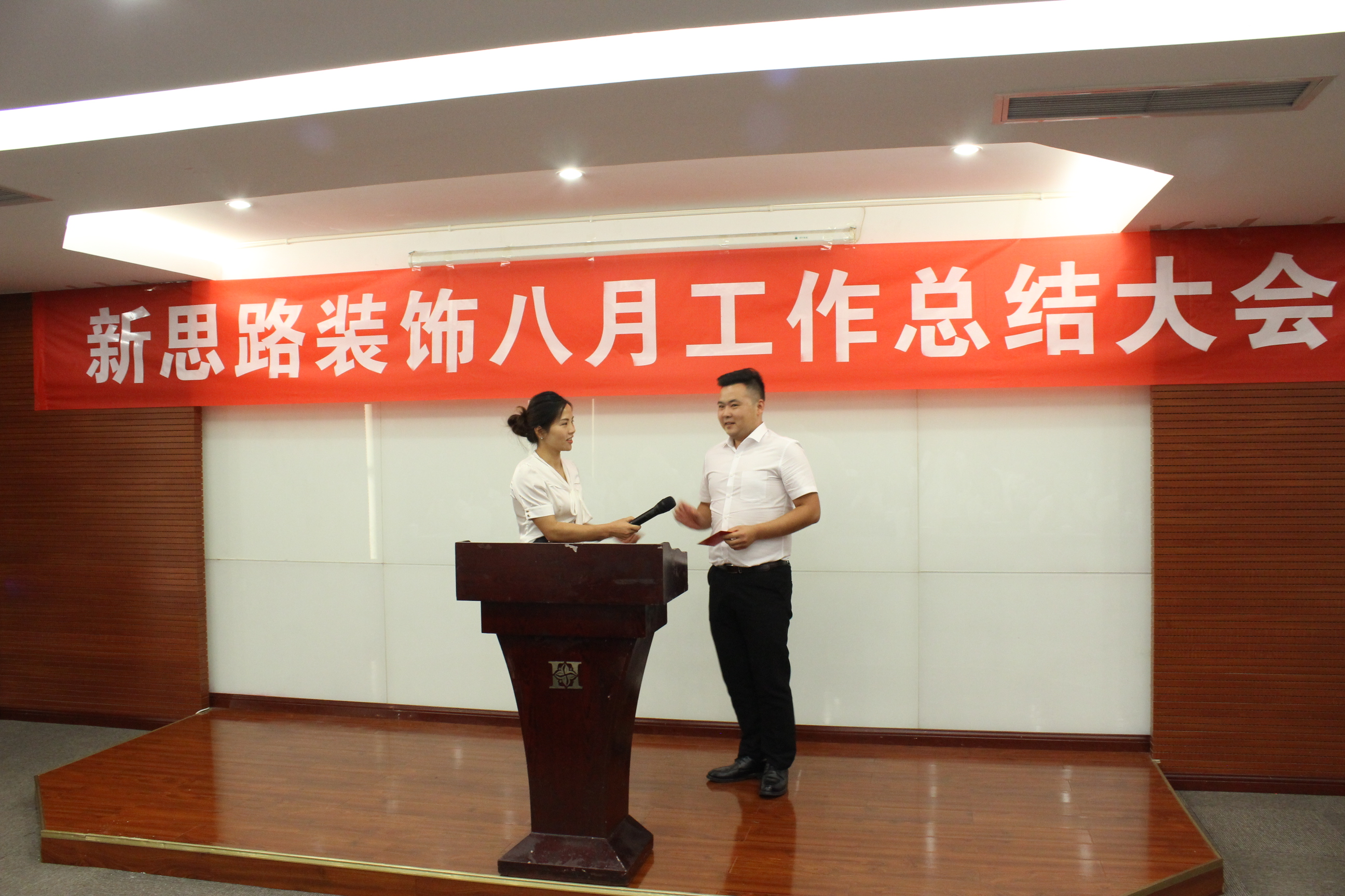 最后,各店面、各部門負責人分別上臺對八月份的工作作出總結(jié),同時對九月份的工作提出了新的要求和新的目標,作出了具體的工作安排和方法,提升了各位家人九月份的工作信心。隨后,財務部蔣總也依照公司獎勵制度,依次向八月份南坪、北紅星的簽單、銷售冠軍、優(yōu)秀項目經(jīng)理頒發(fā)了現(xiàn)金獎勵。