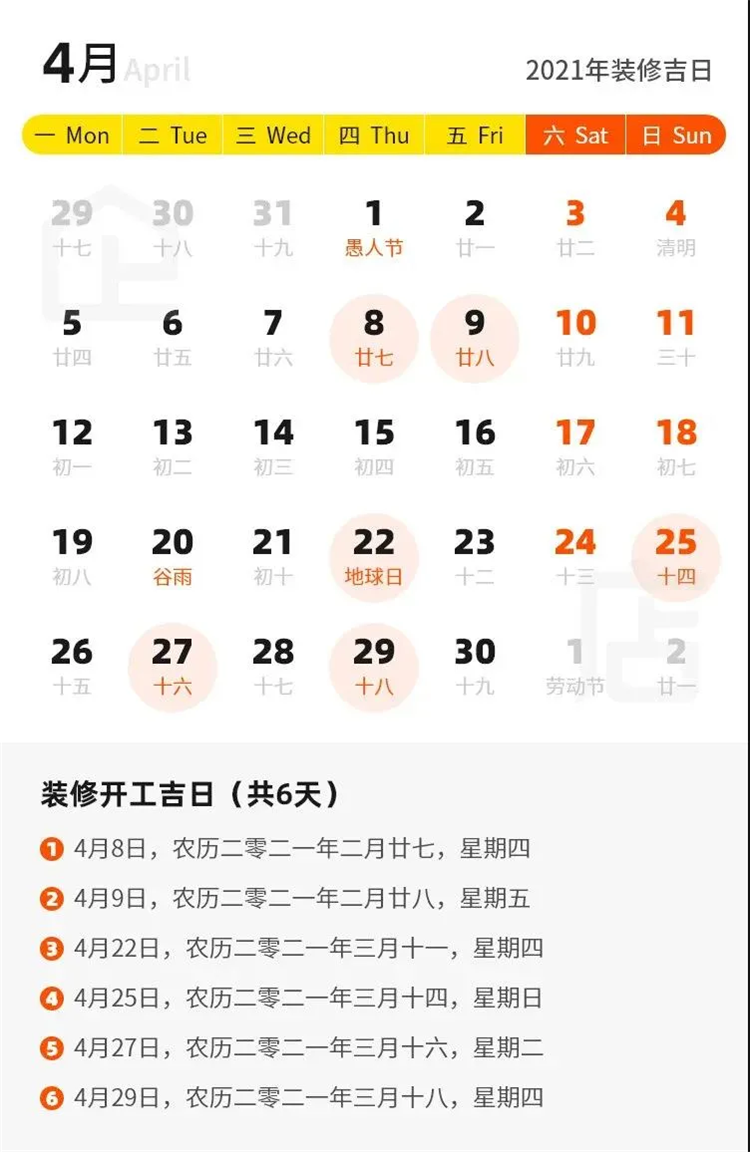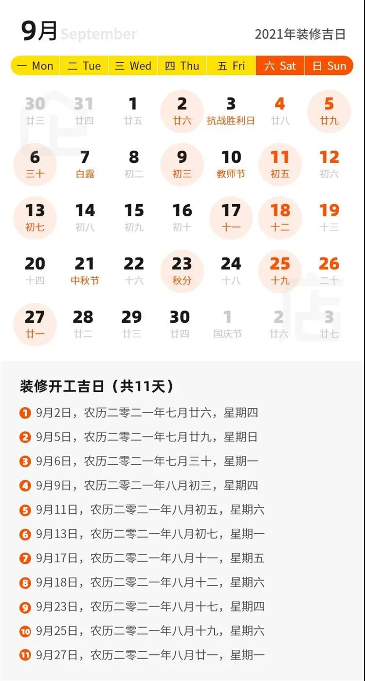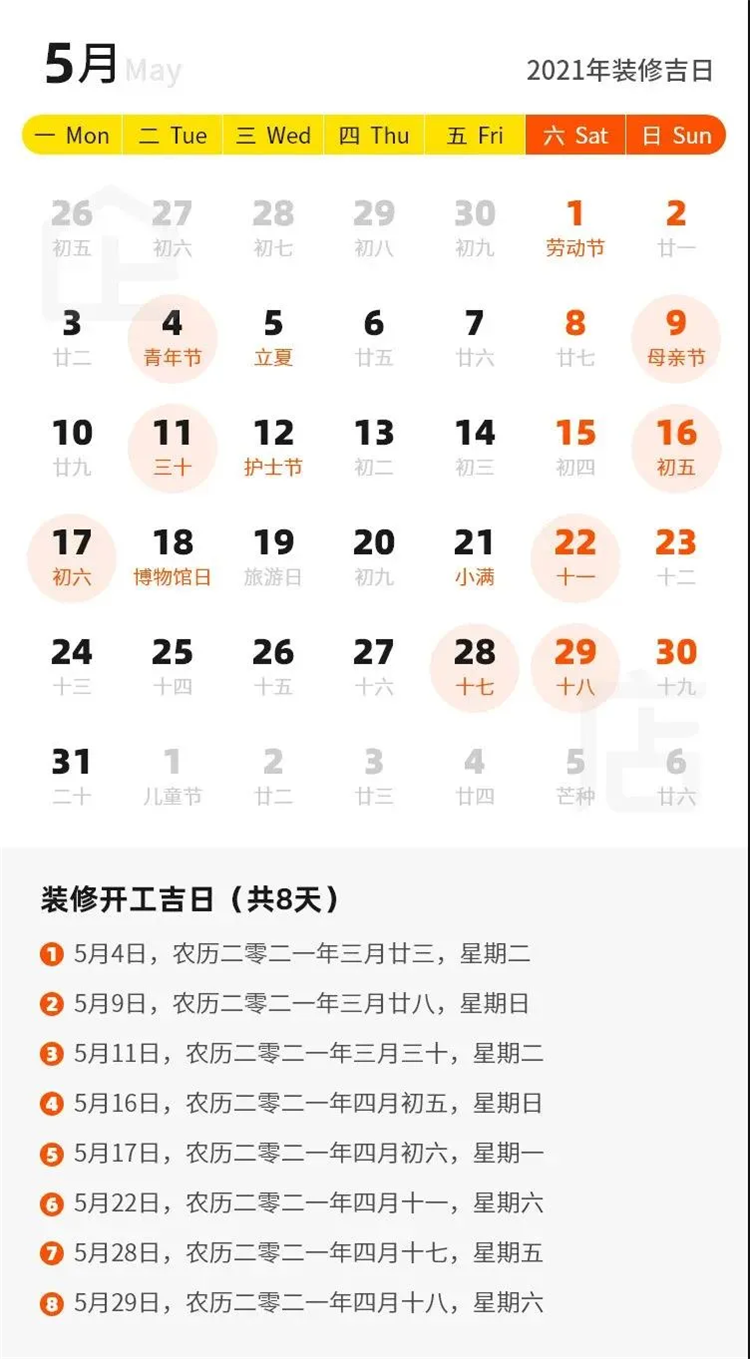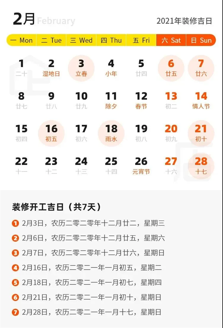 那么2021年有哪些裝修吉日呢?