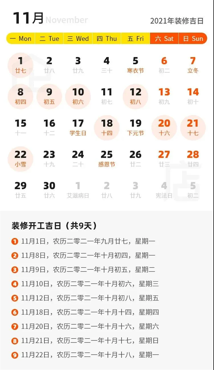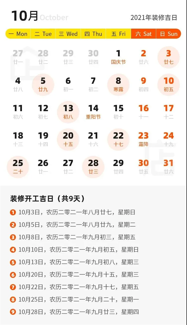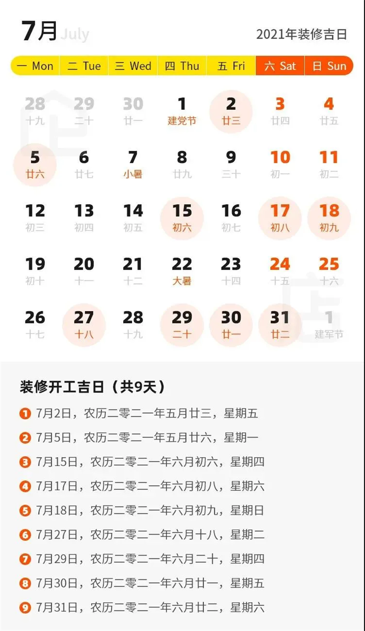 那么2021年有哪些裝修吉日呢?
