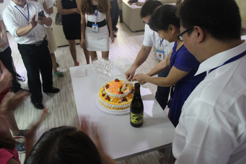 隨后,在所有人“祝你生日快樂”的美妙歌聲和熱烈掌聲中,李總和特邀客戶嘉賓一起打開香檳,切開新思路十周歲的生日蛋糕,共同祝福新思路十周歲生日。喝著芬香醉人的香檳,品嘗著香甜可口的蛋糕,在場的每個人臉上都洋溢著喜悅的笑容。李總也與客戶頻頻舉杯,共同慶祝這一美妙時刻。大家談笑風(fēng)生,豪情滿懷,暢談過往的艱辛坎坷,憧憬著未來的美好畫卷,慶典現(xiàn)場氣氛達到最頂點。