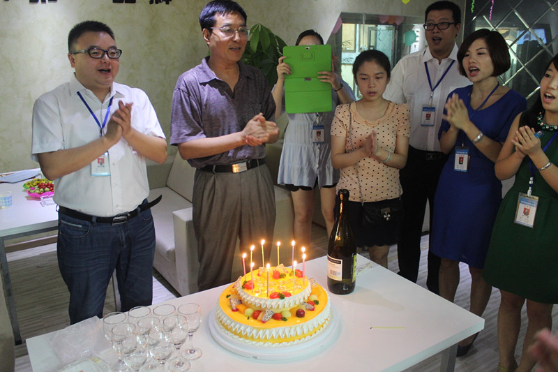 李總與客戶同切新思路十周歲生日蛋糕