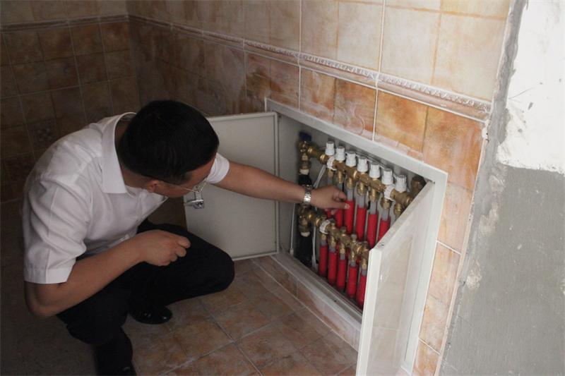 文經(jīng)理正在認(rèn)真查看地暖的安裝情況