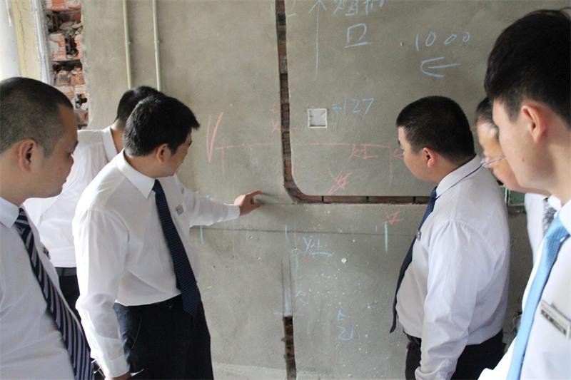 9月份是傳統(tǒng)的裝修旺季,也是公司保品質、促業(yè)績的關鍵時期,為保障工程質量,加強工地管理工作,9月11日,由張總親自帶隊,以全體管理層干部組成的巡查小組,冒雨對金輝城·花樣派、保利江上明珠、魯能領秀城、龍湖·拉特芳斯等多個工地進行了突擊檢查。