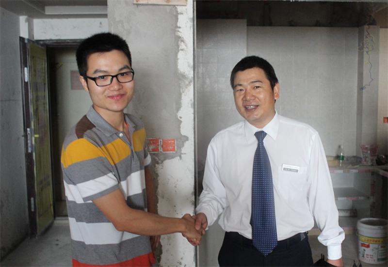 業(yè)主高興地同張總握手,并稱贊新思路工地做得確實好