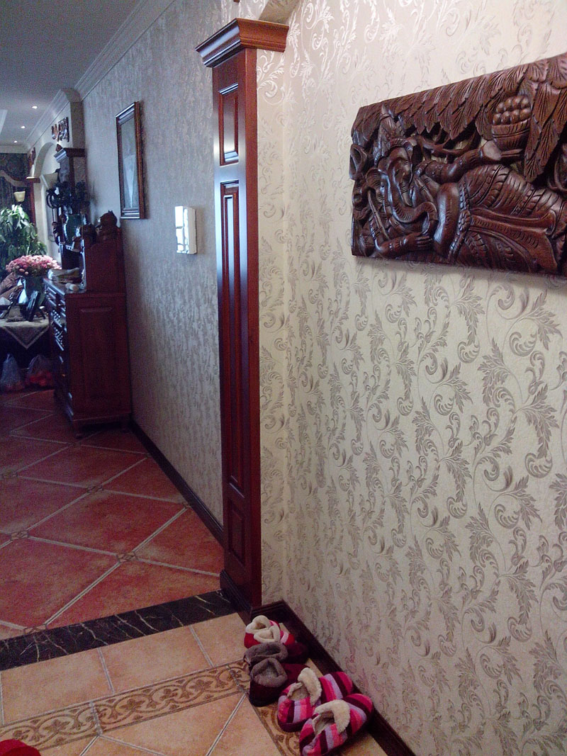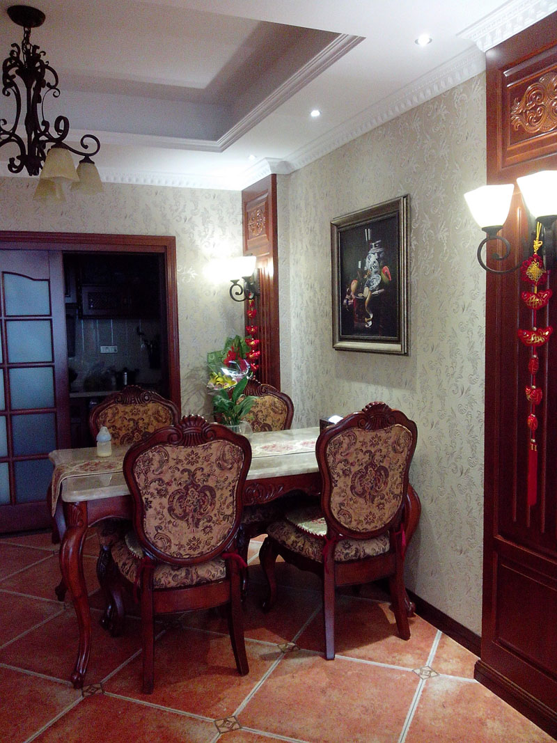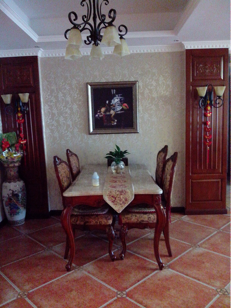 【基本情況】:業(yè)主一家五口人三代同堂,業(yè)主和她父親都是美院畢業(yè)的,所以在設(shè)計(jì)風(fēng)格上有自己獨(dú)特的見解想法。木質(zhì)紋理裝飾、地面仿古磚,營(yíng)造出美式的可以在不同角度產(chǎn)生不同質(zhì)感。同時(shí)也反映在裝修上對(duì)各種仿古墻地磚、墻紙的偏愛(ài)和各種仿舊工藝的追求。多以布面墻體為主、皮質(zhì)家具。