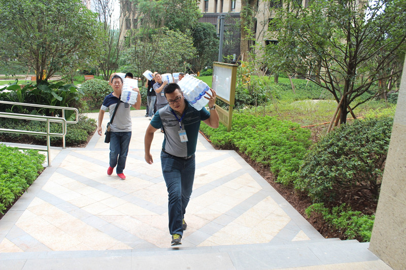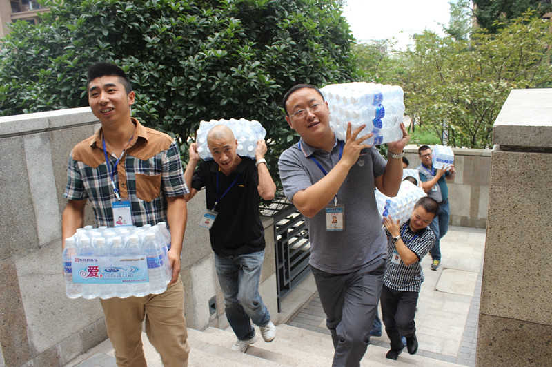 臺階再高,天氣再熱,但所有人的腳步依舊堅(jiān)定,心懷員工,都想快速地把水送到一線員工手中以解干渴。