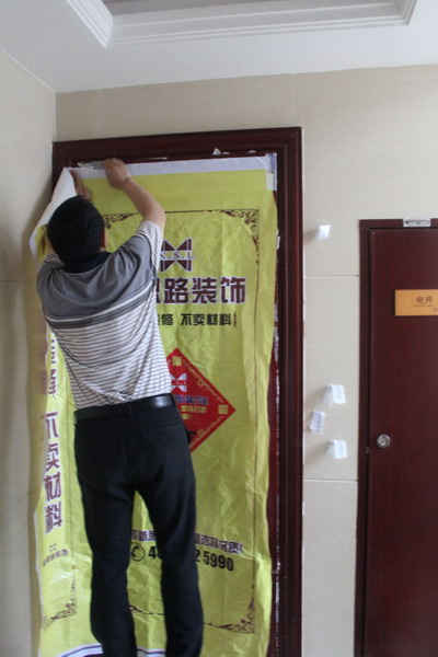 張貼門保護(hù),確保在裝修過程中大門不被損壞。