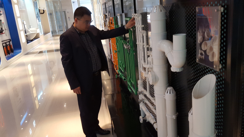 李總正在認(rèn)真查看水管管件