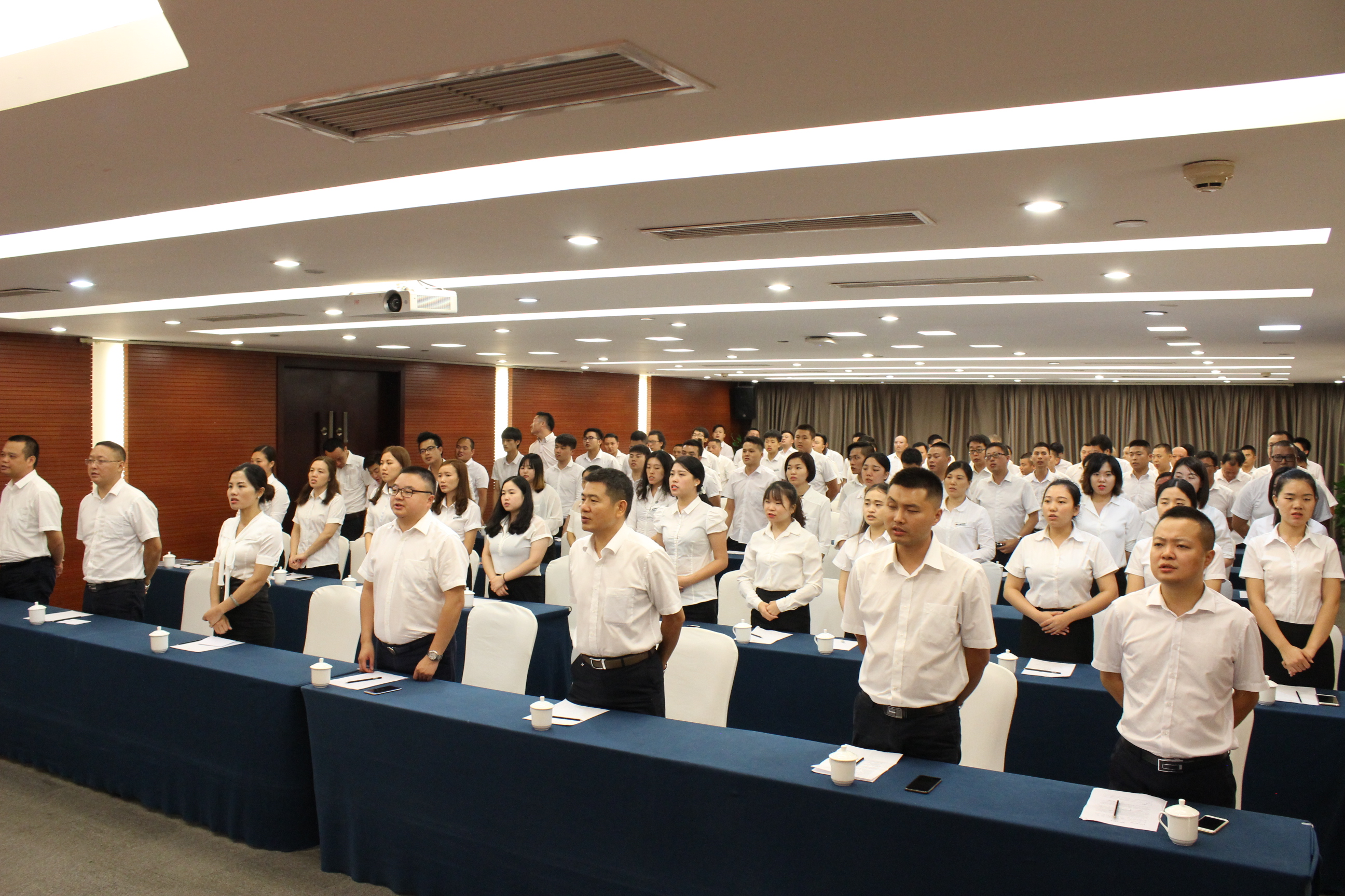 大會開始,全場起立宣讀公司口號
