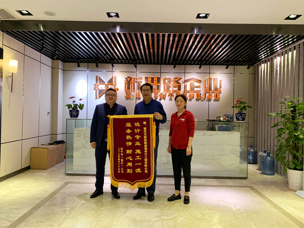 5月4日上午,公裝項目英中耐(重慶)公司段總,為新思路送上一面大紅錦旗。“設(shè)計專業(yè)、施工一流;服務(wù)熱情、耐心周到”這16個字充分體現(xiàn)出對我們新思路裝飾公裝部的設(shè)計、施工及服務(wù)的高度認(rèn)可。