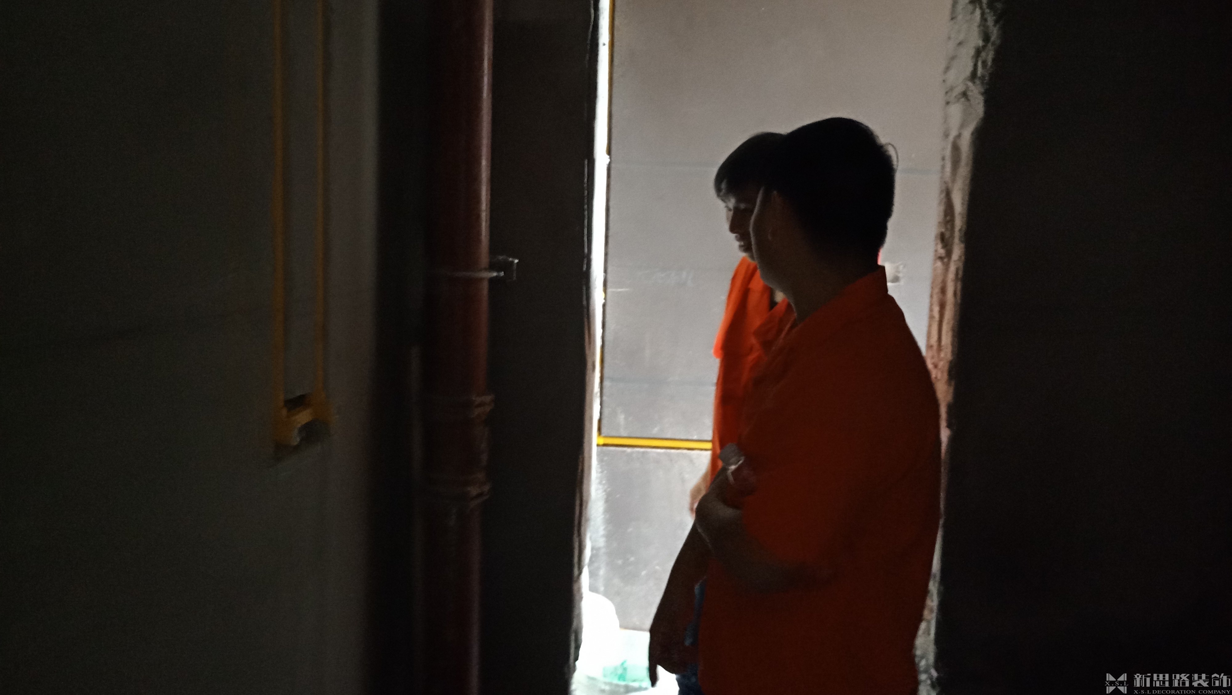 工人師傅們在討論衛(wèi)生間水管工藝