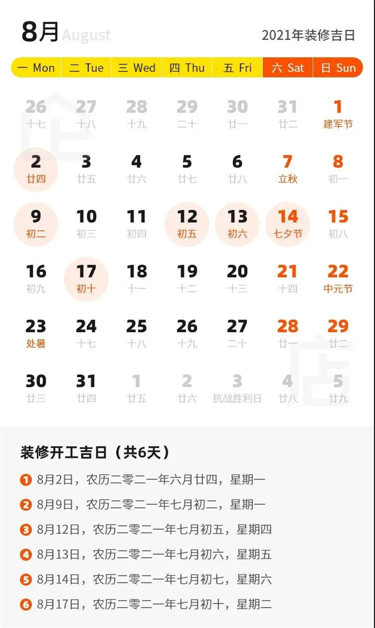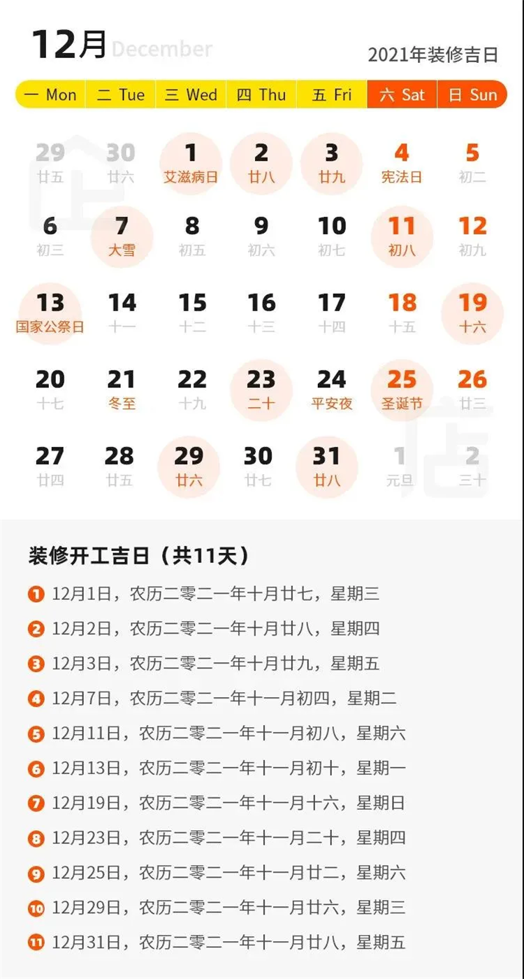 那么2021年有哪些裝修吉日呢?
