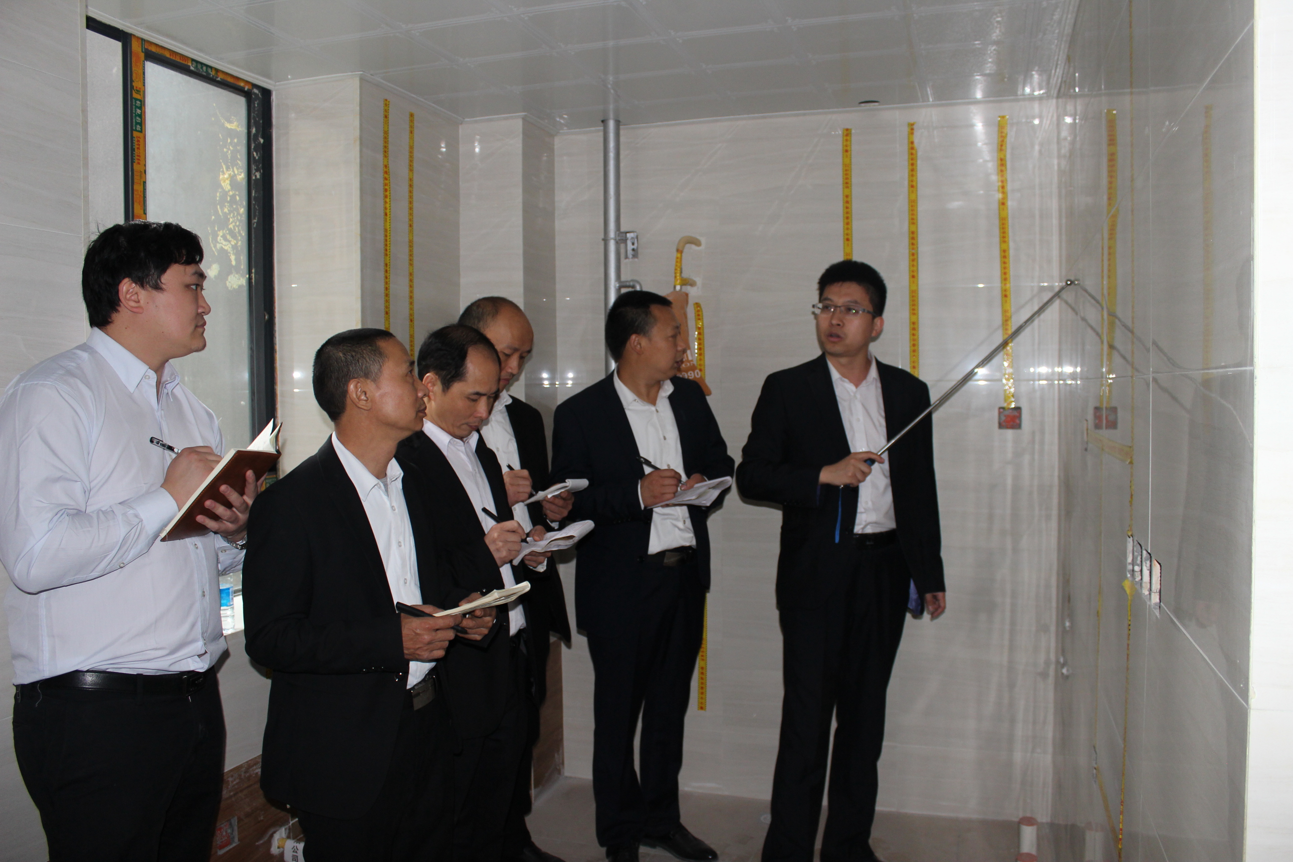 這次巡查,除了工地形象、施工進(jìn)程、工藝工序之外,施工標(biāo)準(zhǔn)、施工安全、現(xiàn)場(chǎng)管理等方面也是考察的重點(diǎn)。剛踏入工地,巡檢隊(duì)伍立即忙碌起來(lái),有檢查衛(wèi)浴水電改造,測(cè)試瓷磚空鼓,測(cè)量強(qiáng)弱線管分布,以及臥室等線路鋪裝等等。每位檢查人員都各司其職,每一項(xiàng)檢查都細(xì)致到位。對(duì)于檢查情況,巡查人員也如實(shí)記錄工程情況及施工質(zhì)量情況,并責(zé)令相關(guān)項(xiàng)目經(jīng)理限期整改。對(duì)于工地形象規(guī)范施工的工地,文經(jīng)理對(duì)該項(xiàng)目經(jīng)理特提出口頭表?yè)P(yáng)和現(xiàn)金獎(jiǎng)勵(lì),并希望在今后的工作中再接再厲!同時(shí)希望所有項(xiàng)目經(jīng)理以他們?yōu)榘駱?,扎扎?shí)實(shí)的做好本職工作,為新思路美好的明天添磚加瓦!